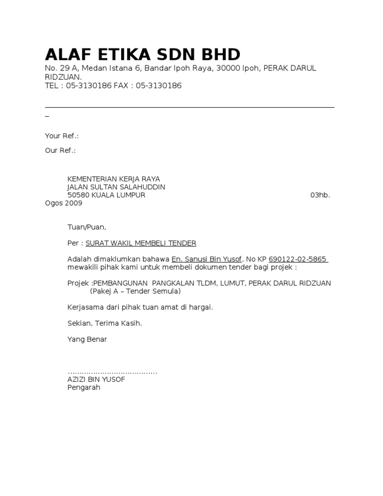 Contoh Surat Membeli Tender Pdf