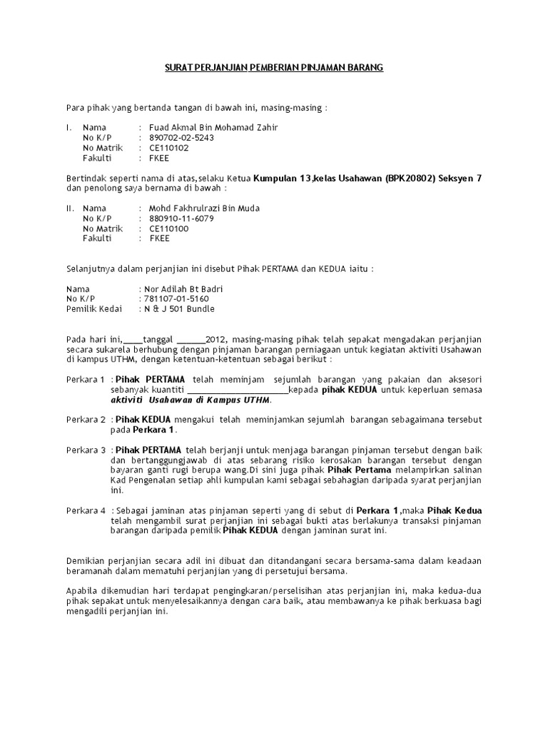 Here are some resumes of keywords to help you find your search the copyright owner is the original owner this blog does not own the copyright of this image or post but this blog summarizes a selection of keywords you are looking for. Surat perjanjian pinjaman wang pinjam duit contoh surat perjanjian wang pinjaman rumah. Contoh Surat Perjanjian Pinjaman Peribadi adalah gambar Contoh Surat berdefinisi tinggi dan memiliki ukuran 768x1088.